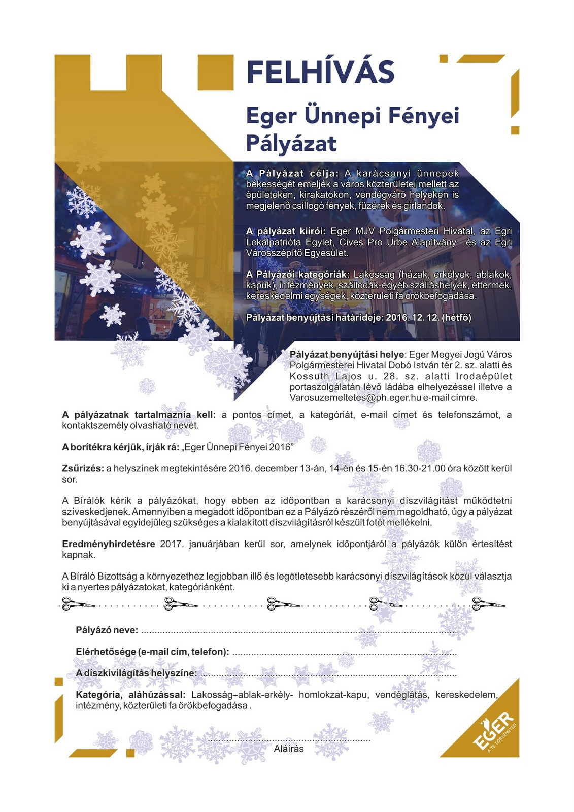 Eger Ünnepi Fényei Pályázat 2016